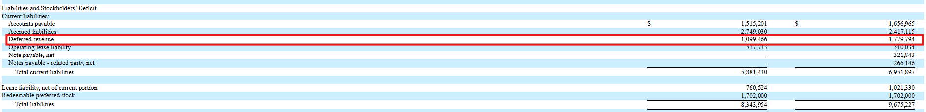 The company’s 10-Q shows Deferred Revenue falling from $1.78M at year-end 2023 to just $1.10M by June 30, 2024.